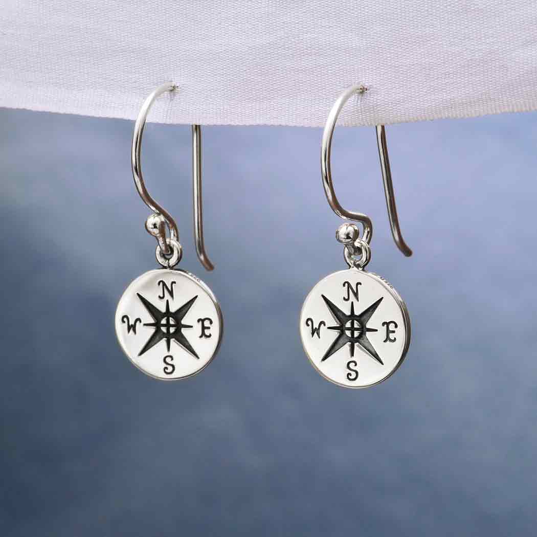 These sterling silver compass earrings celebrate progress and change. The compass has long been used as an instrument to indicate the direction of the changing winds, and represent protection, luck, and guidance. Great for a graduate or anyone taking on a new journey. So sail away on the shining seas, and always find your way home.