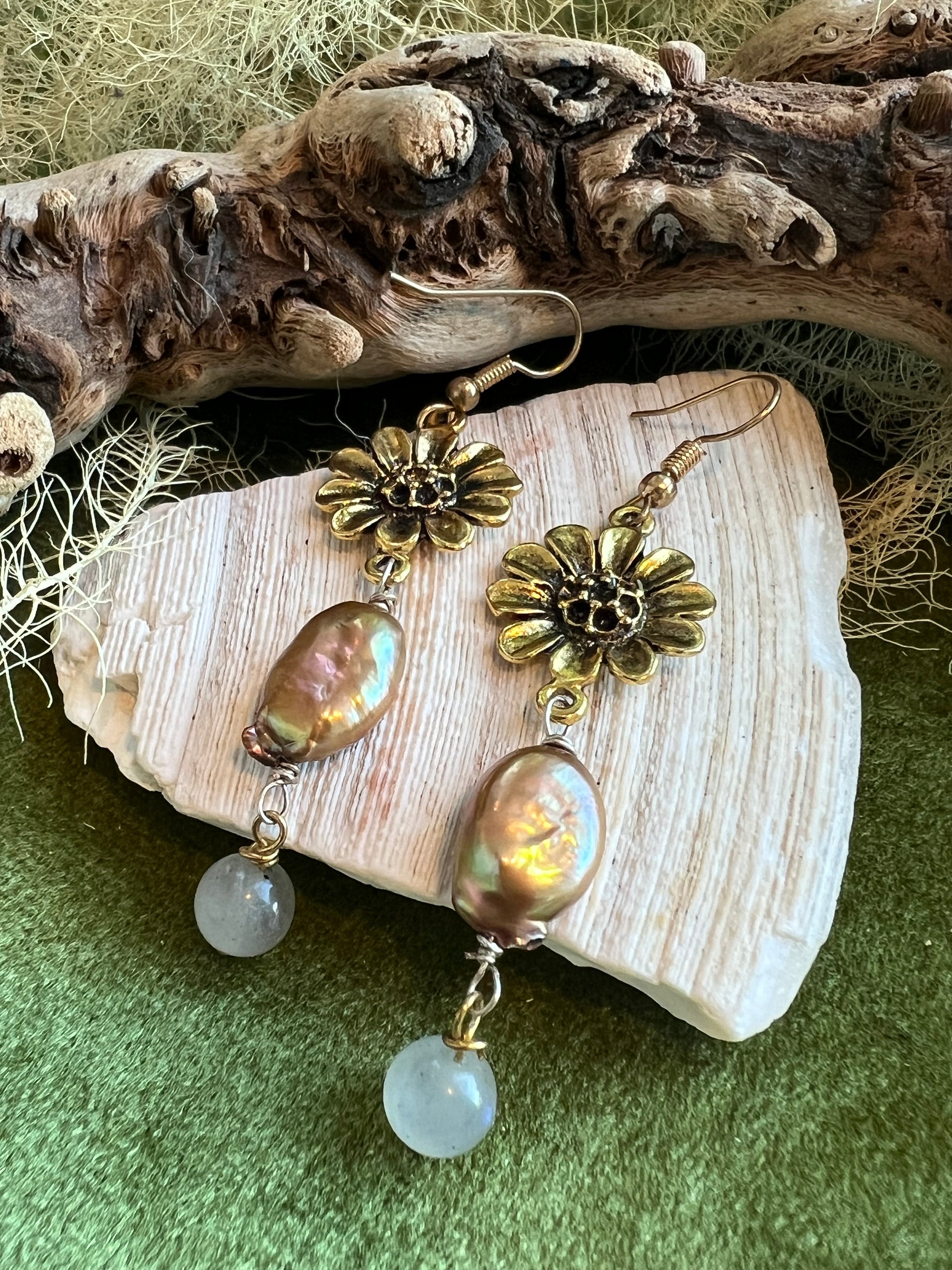 Golden Hour Earrings with Freshwater Pearl and Labradorite