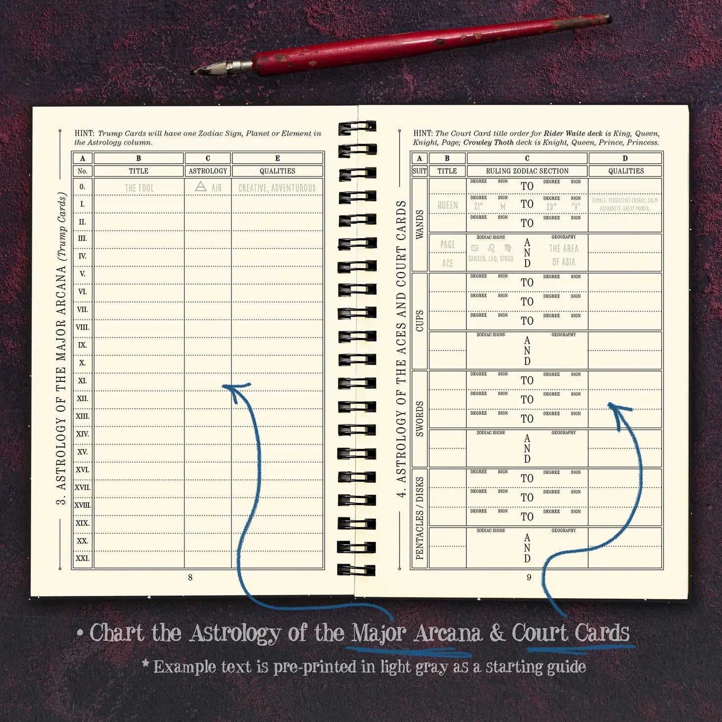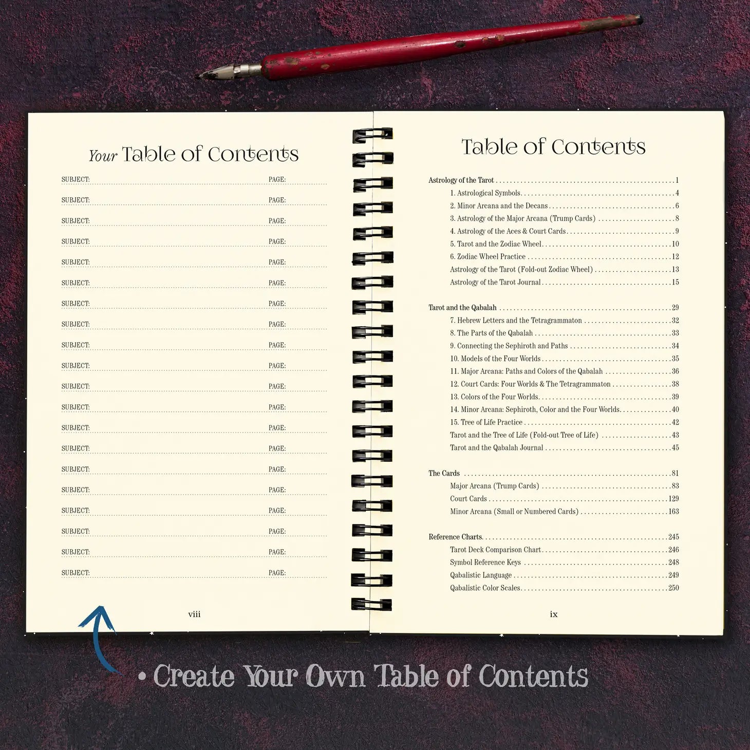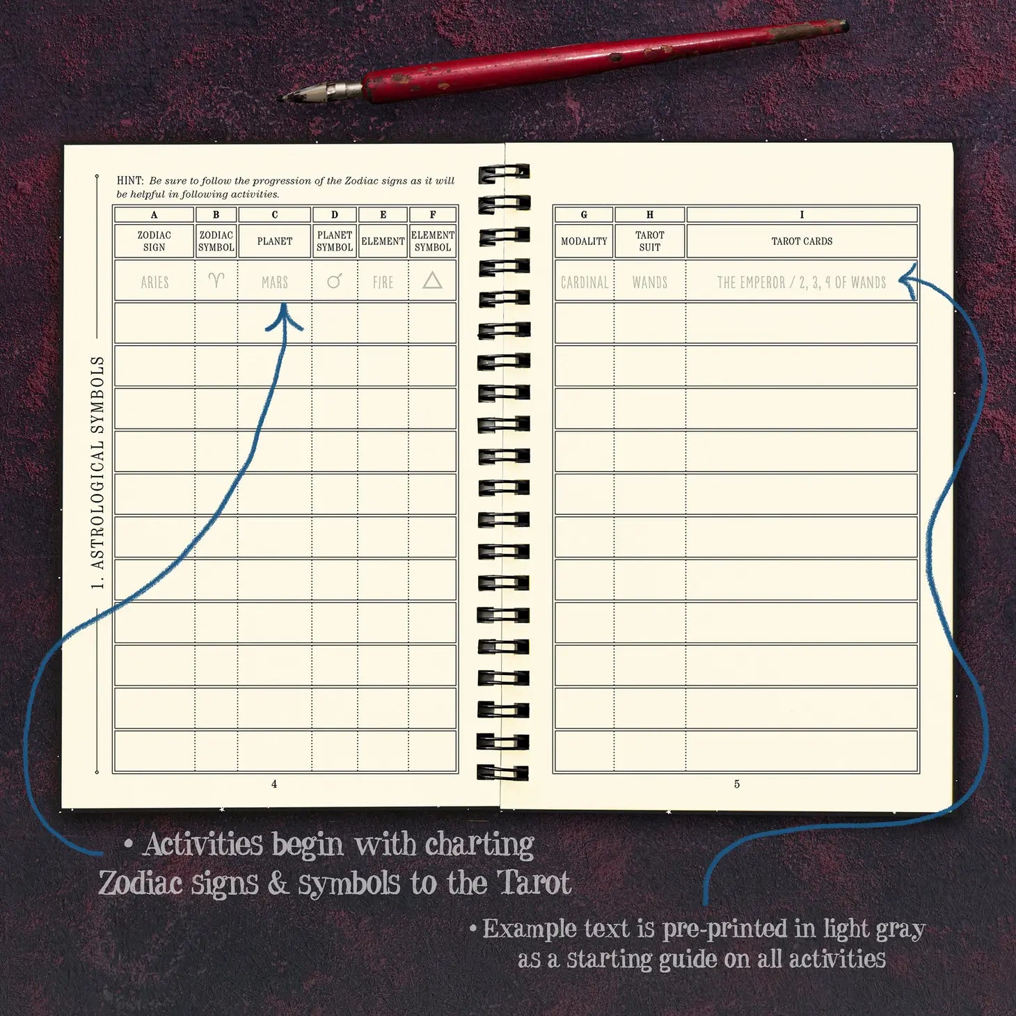 Over 250 Pages with 17 tarot related activities on Astrology and Qabalah (including 7 fold-out) + 189 journal pages designed specifically for each Zodiac sign, Tree of Life Sephira & Path, and tarot card in a traditional 78-card deck. Symbol, color, and deck reference charts included.